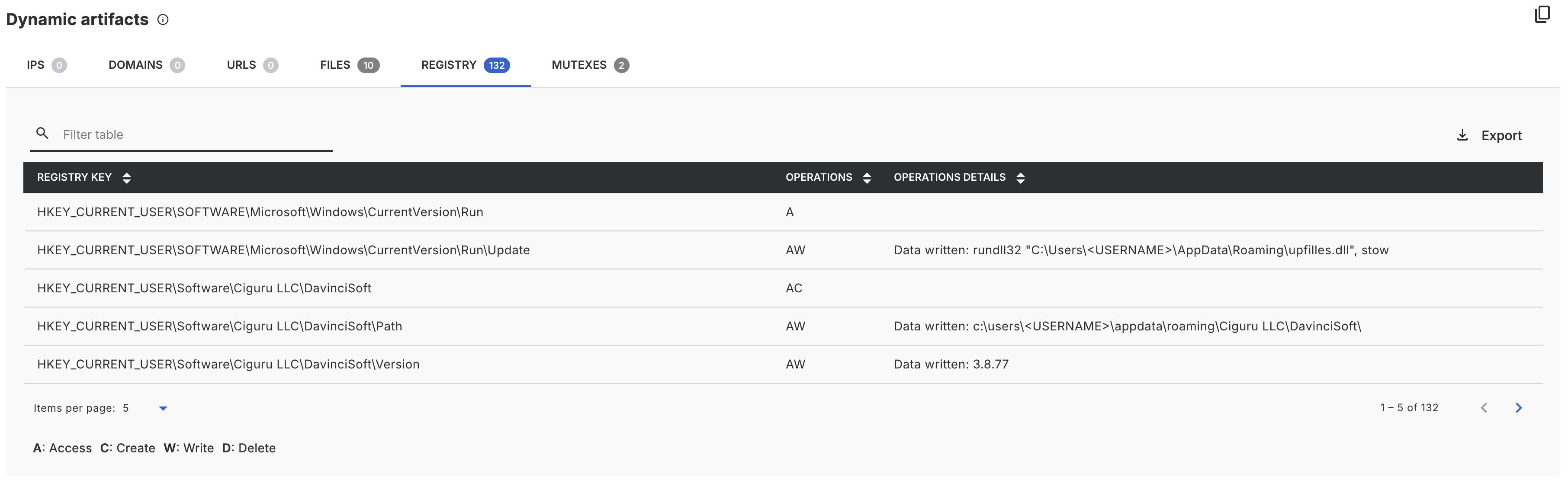 The dynamic artifacts section lists all artifacts that were extracted during the sandboxing process. The types collected are: