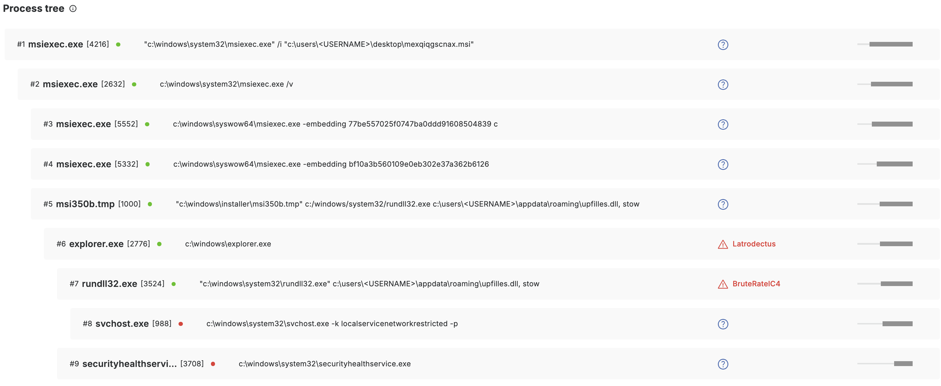 This section shows more details on process behavior, including process name, PID, liveness, command line arguments, verdict and the lifetime.