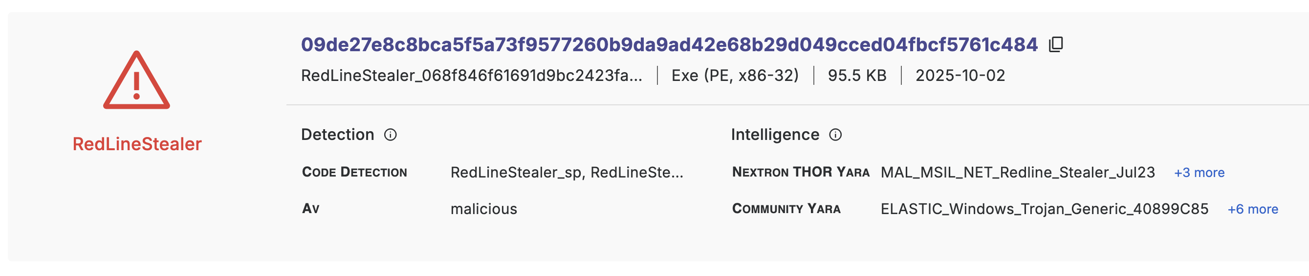 For instance, both a community rule and Threatray’s code detection technology might flag malware as ‘RedLineStealer,’ though different methodologies may sometimes lead to different conclusions.