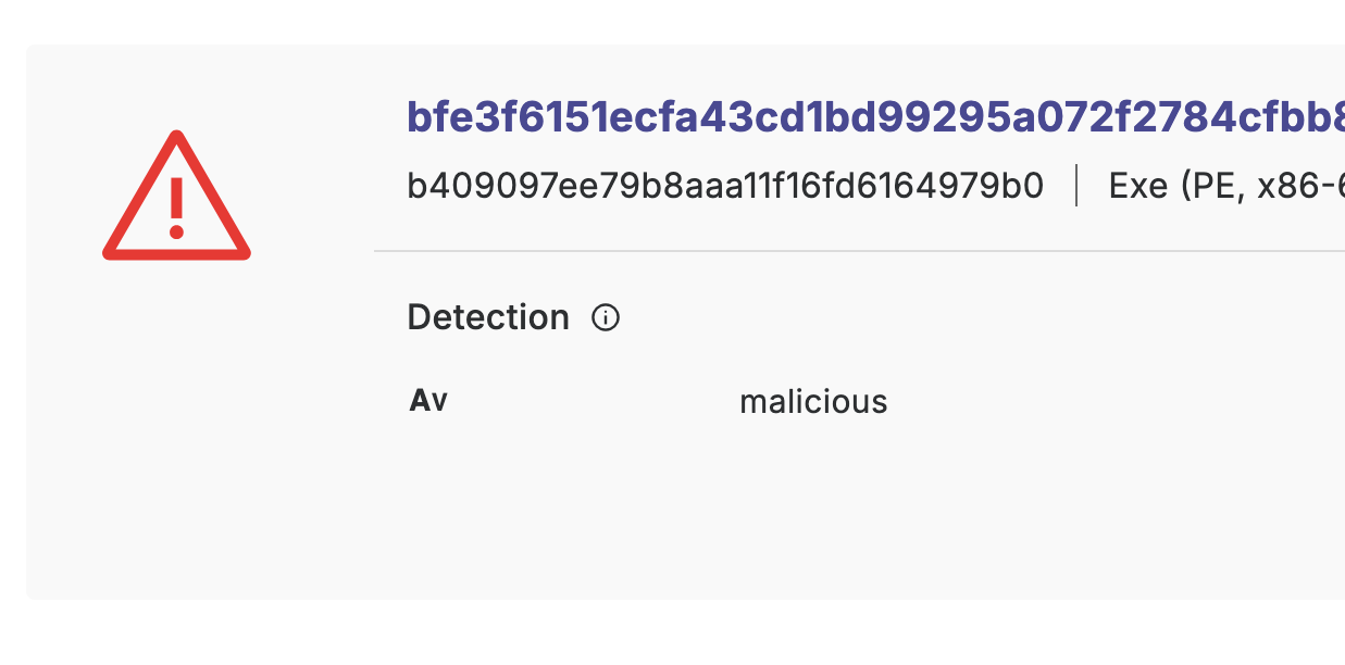 In the example below, we were not able to identify the malware family, but the AV has detected the sample to be malicious, which is why we show the red symbol for malicious files.